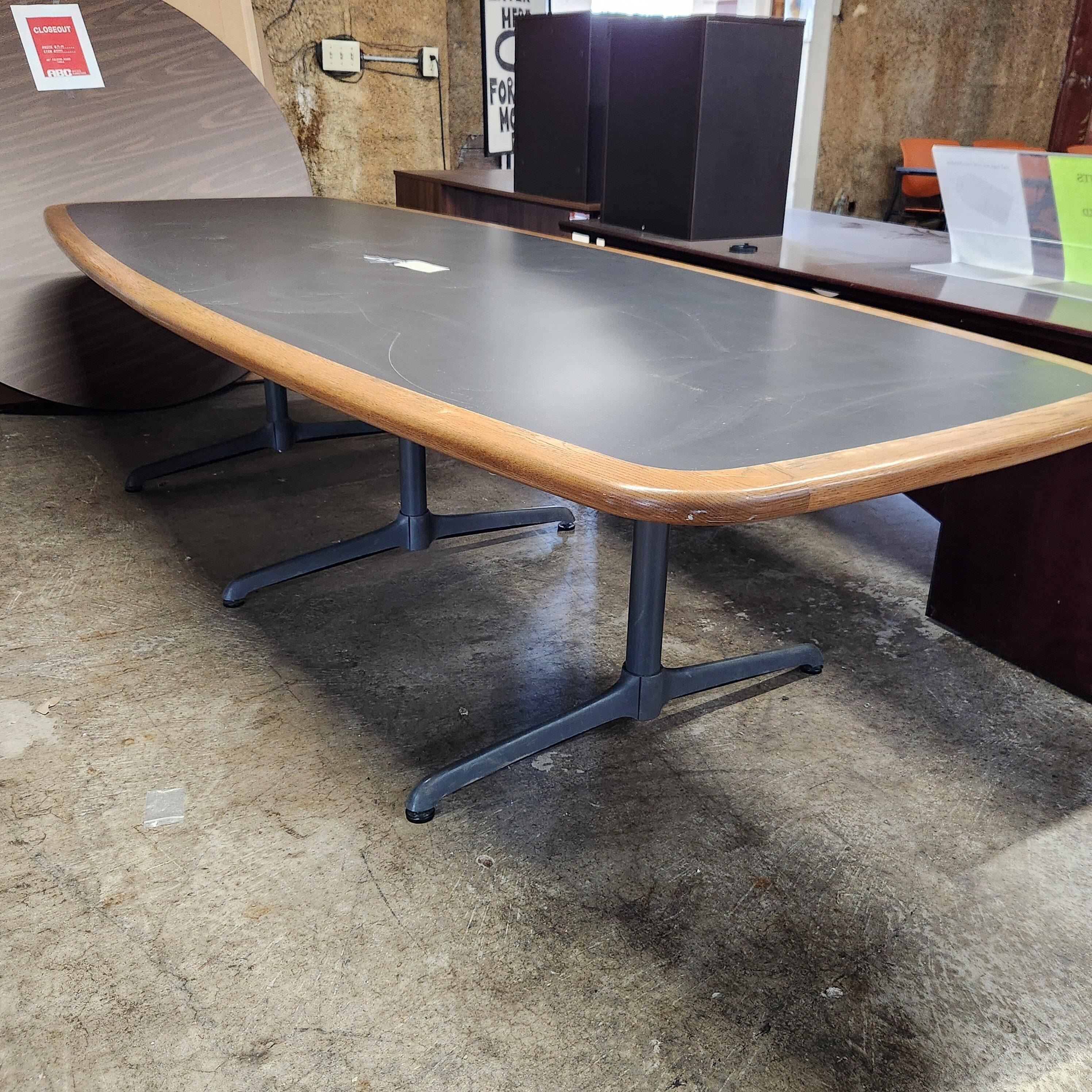 Looking for a big, sturdy conference table without the big price tag? This gently used 10-foot by 4-foot table is an unbelievable deal for any office. It features a modern grey laminate top with light wood edging and three durable metal legs. Yes, it shows a little wear and tear, but it’s solid, functional, and perfect for gathering your team around.