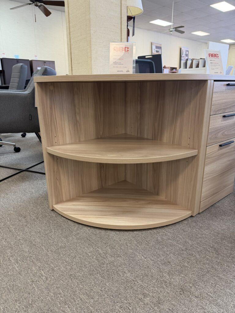 Compact corner bookcase crafted from durable wood, designed to maximize storage in small spaces. Sleek design fits any corner and comes in a variety of finishes, making it ideal for offices or home use.