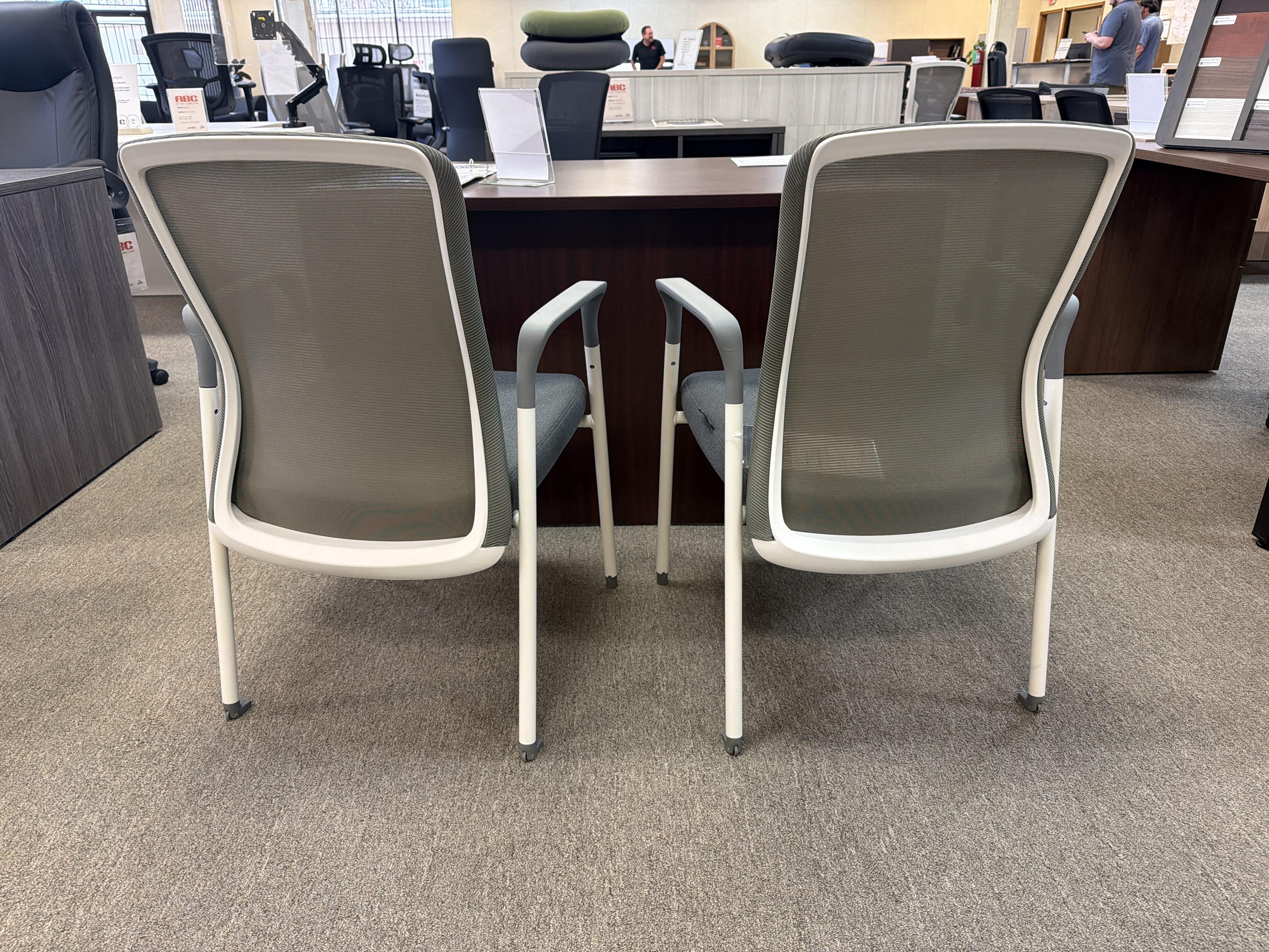 Fortis Series seating brings sleek versatility to modern workspaces. Featuring a crisp white frame and breathable mesh back, the task chair offers height and tilt adjustment, while the guest chair includes hidden rear wheels for effortless mobility.