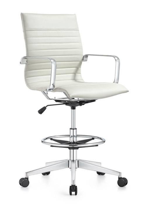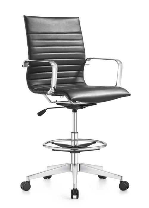 Elevate your workflow—literally. The Janis Stool takes the executive aesthetic to new heights, making it the perfect power seat for 36" or 42" counters. Engineered with a steel inner frame and Pirelli web internal suspension, this stool doesn't just look sharp; it delivers high-performance comfort that lasts all day. With a 300 lb weight rating and a hand-polished aluminum base, the Janis is built for those who don't compromise. Dial in your position with a massive 7.5" height range and keep your legs fresh with the ergonomic waterfall seat design. Available in everything from classic Black to a bold Blue Nappa, it’s the ultimate upgrade for any modern workspace or high-top conference zone.