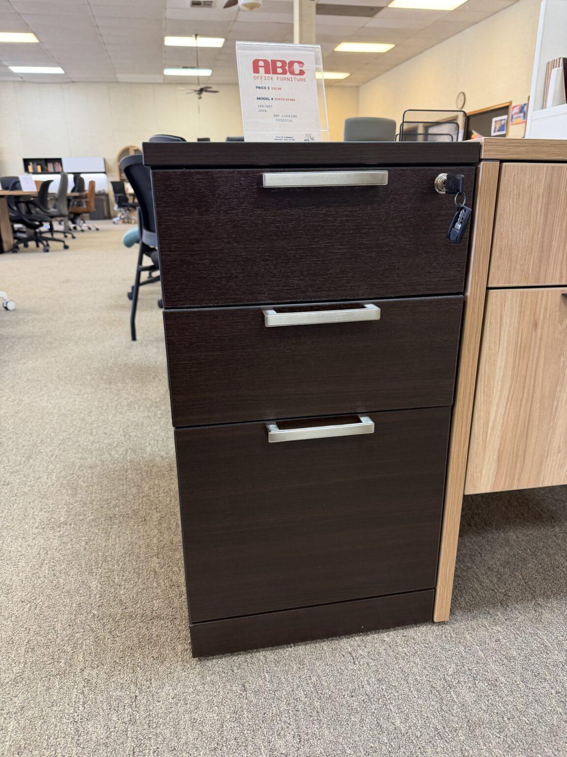 Locking pedestal with box-box-file configuration, offering secure storage and durability. Available in multiple laminate finishes to complement any office workspace.