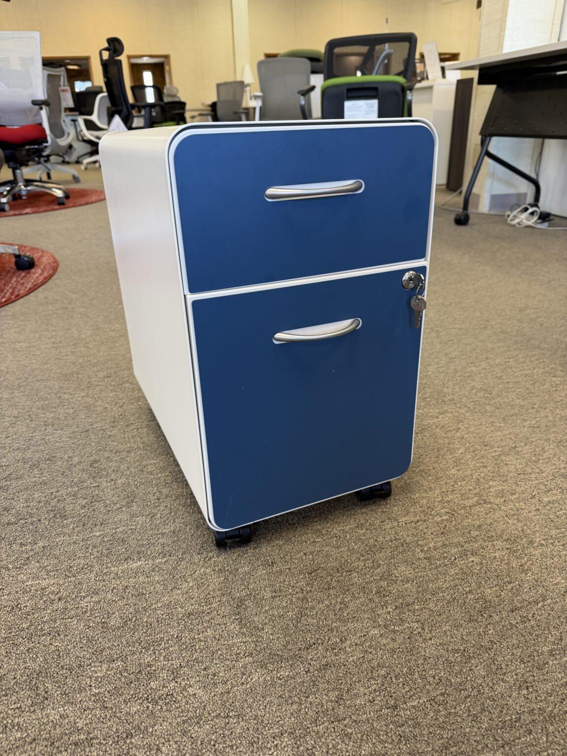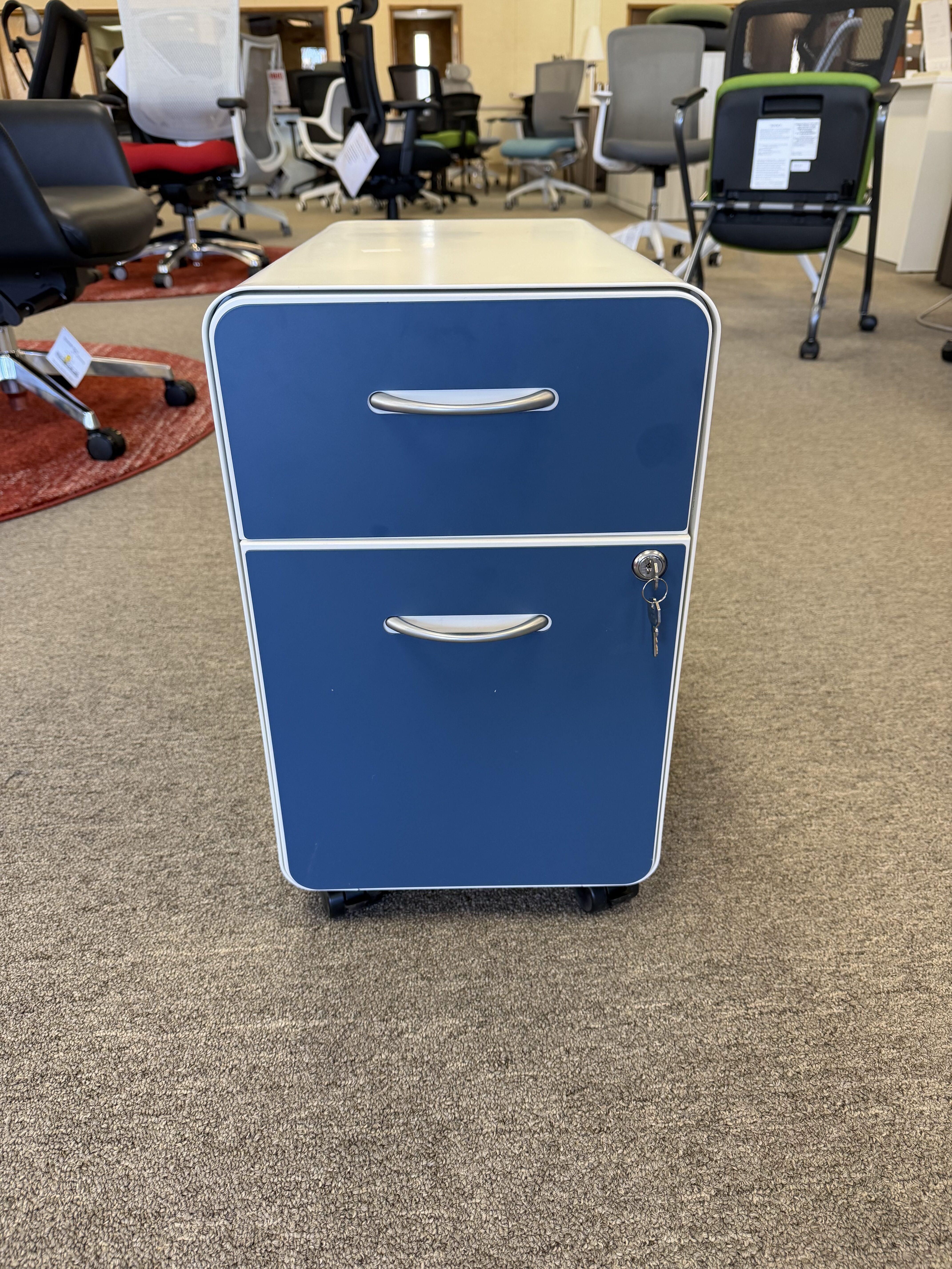 Add color and convenience to your workspace with this modern O-shape mobile pedestal. Built from heavy-gauge steel with a clean white finish, it features locking drawers, silver designer pulls, and magnetic drawer fronts available in four vibrant colors. Includes casters and a glide kit for flexible use—whether mobile or stationary. Ball-bearing drawer slides ensure smooth, reliable performance.