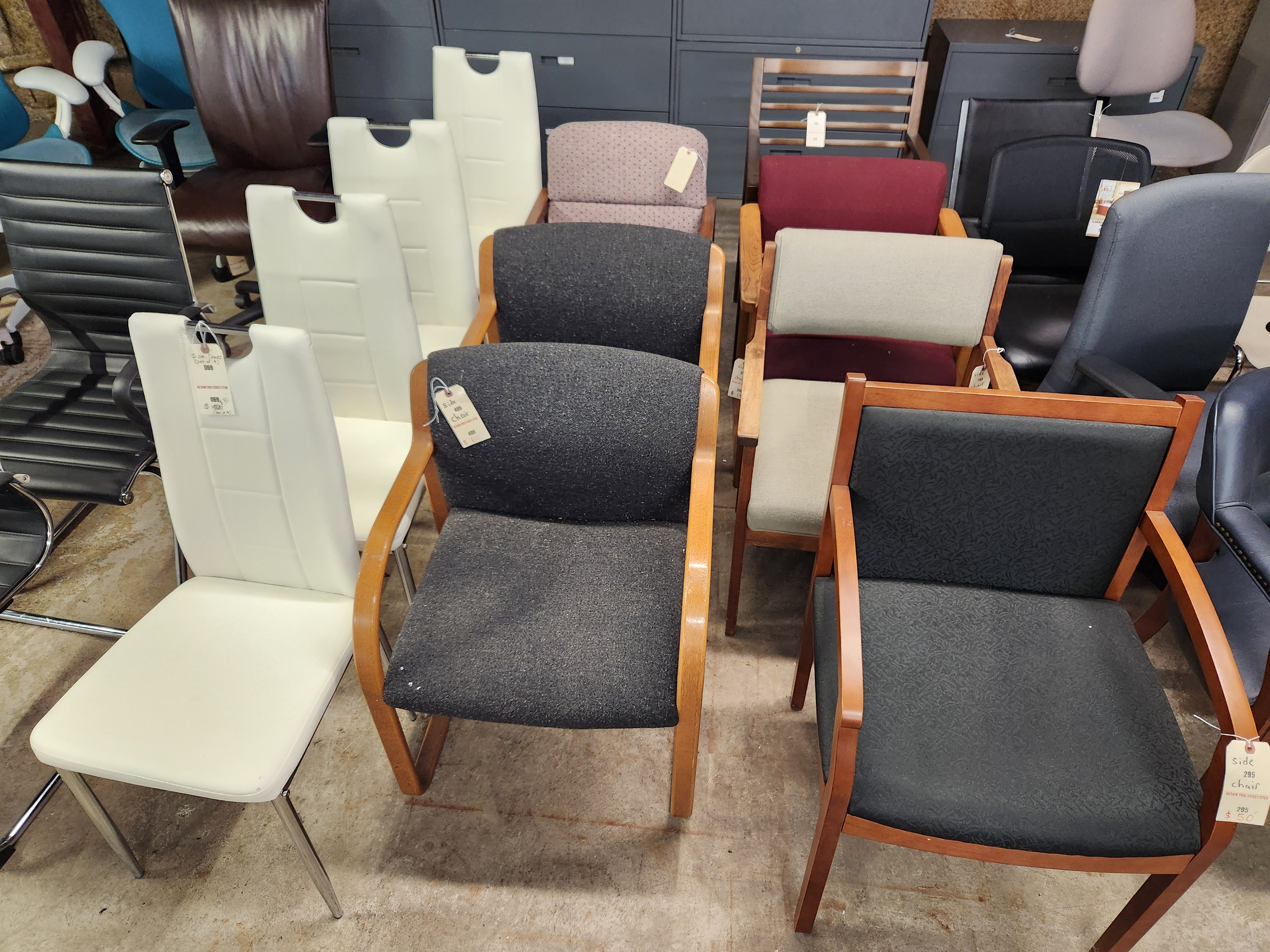 Give your visitors a comfortable place to sit without stretching your budget. ABC Office offers a wide selection of gently used guest and side chairs — from simple black designs to bold 80s throwbacks. With prices ranging from just $25 to $60 per chair, you’ll find affordable seating options for any workspace or waiting area.